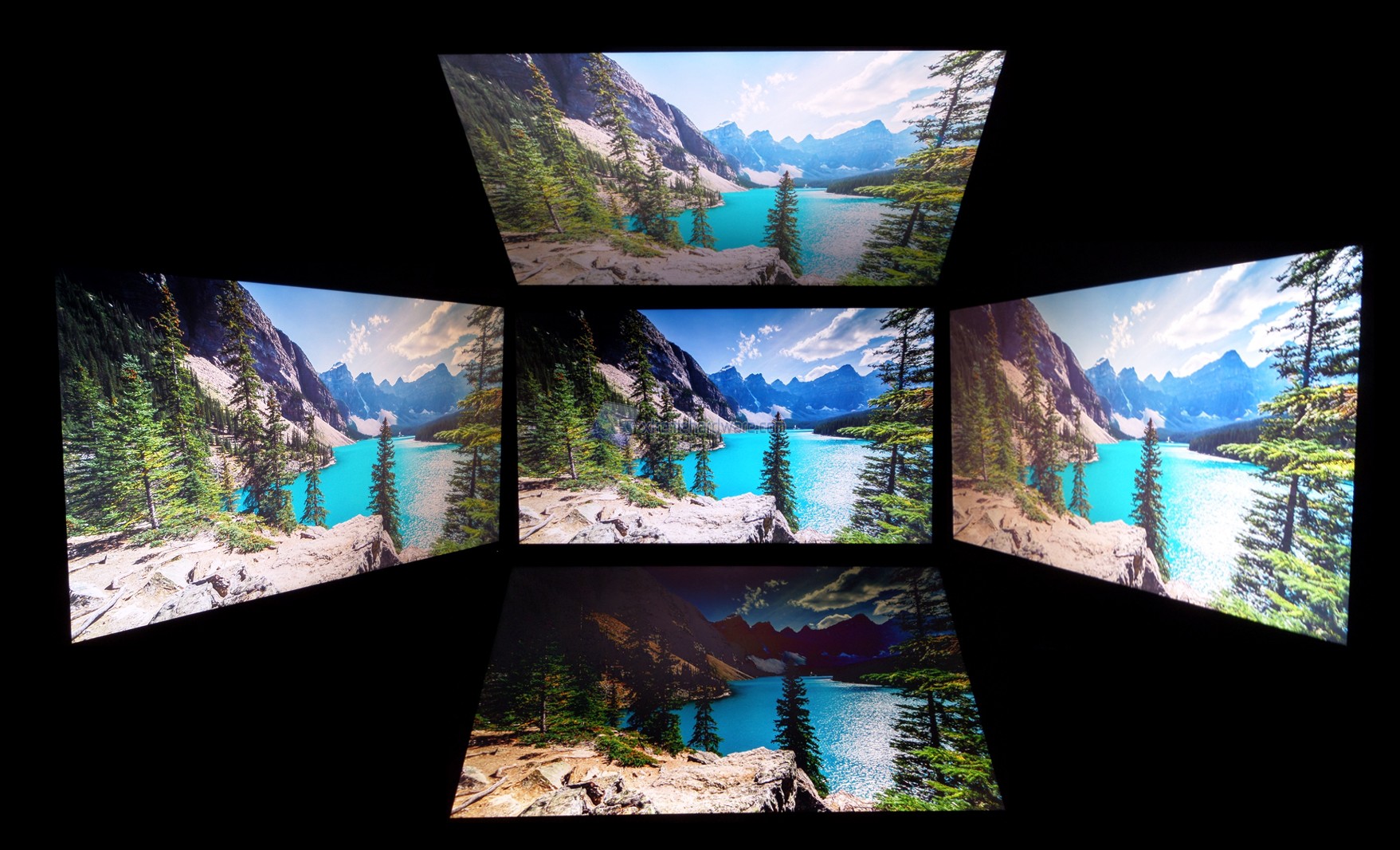 Suddividendo lo schermo in nove rettangoli, abbiamo misurato con il colorimetro l’uniformità della luminosità e dei colori. La differenza massima registrata è risultata pari al 17%, con una media dell’11%, per quanto riguarda la luminosità, mentre per il colore, il Delta-E maggiore è stato di 3,4, con una media dell’1,8. Possiamo dire che il risultato è sufficiente.
