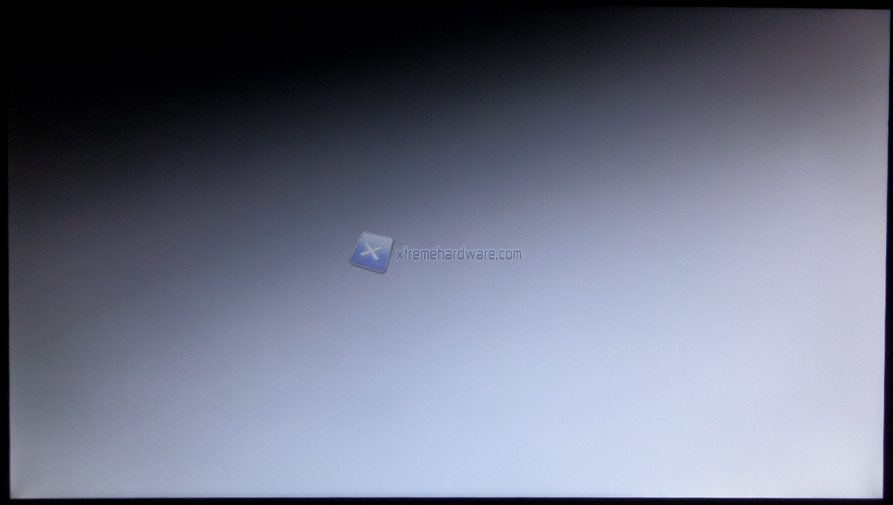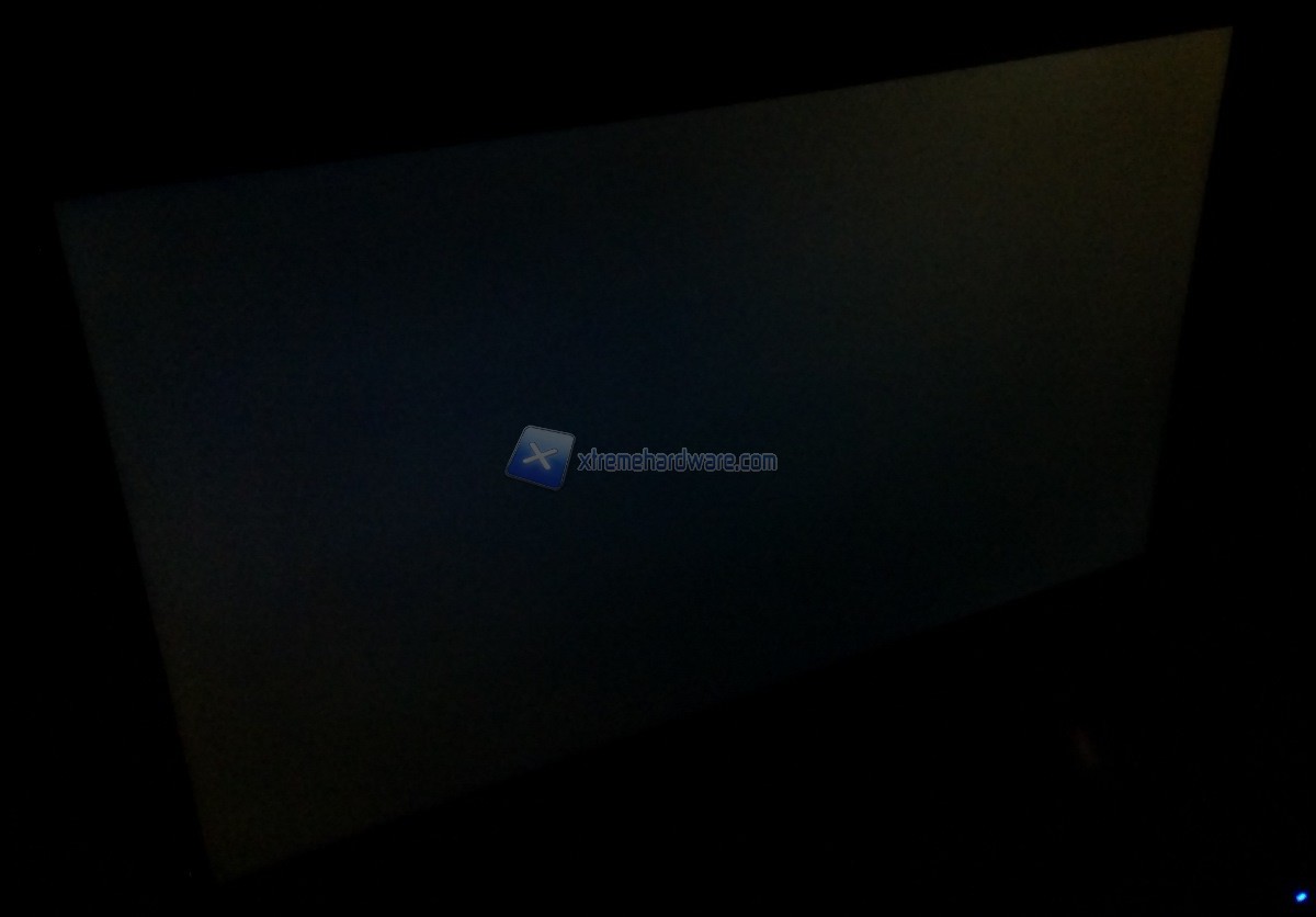 Qui si mettono in mostra i maggiori limiti del pannello TN. Basta spostarsi di pochi centimetri per cominciare a notare variazioni di tonalità. Bisogna posizionarsi sempre nel migliore dei modi rispetto al monitor per non incorrere in varie alterazioni, specialmente sull’asse verticale, noto punto debole dei TN. Con un'immagine completamente nera l'effetto glow non dà bagliori come in pannelli di tipo IPS, ma come si può vedere anche qui l'angolo di visione incide sulla riproduzione.