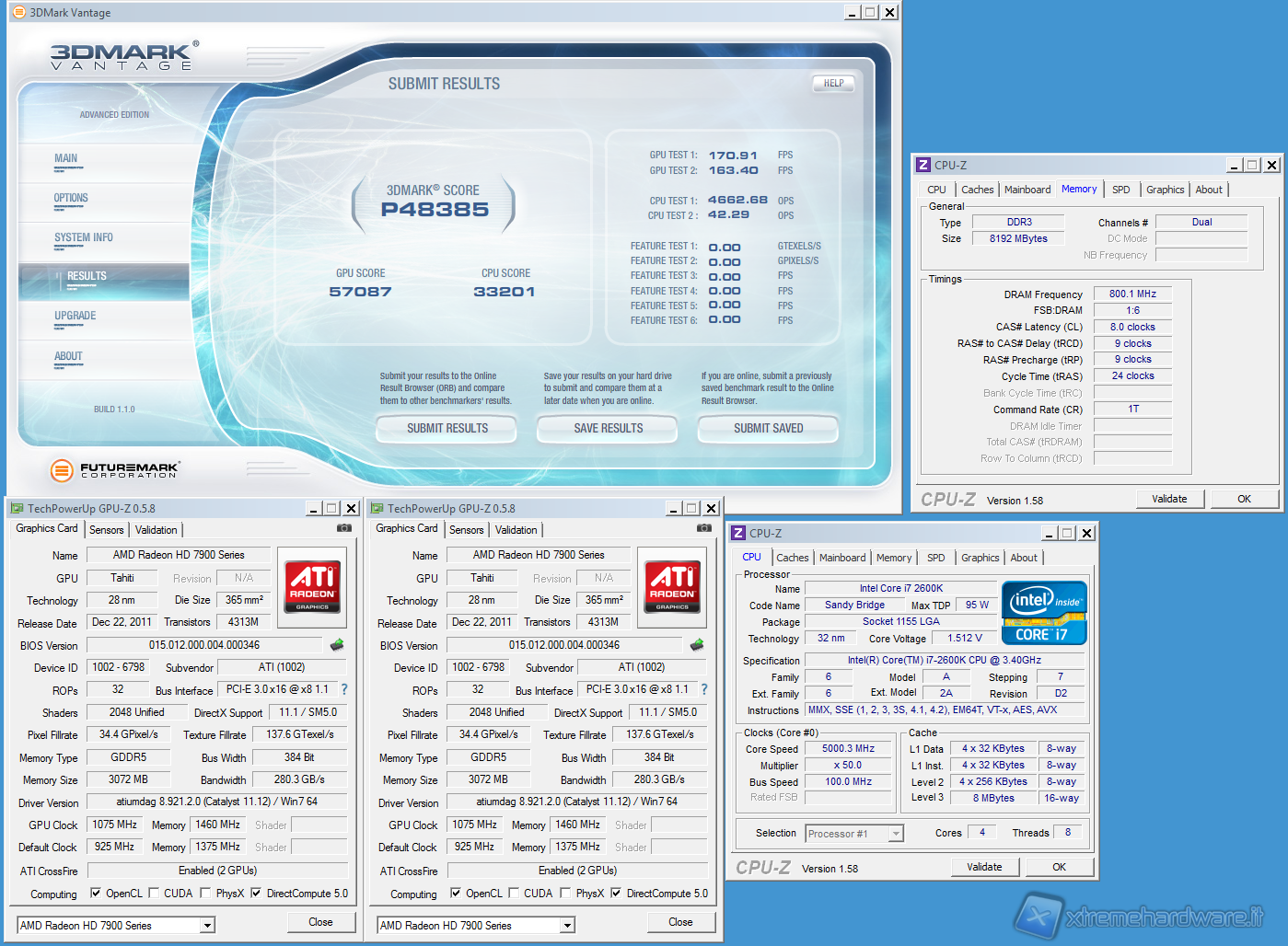 La Radeon HD 7970 è molto propensa all'overclock, infatti, grazie alle sue capacità, sono stati recentemente sbaragliati moltissimi record mondiali, nel nostro caso non è stato possibile overcloccare pesantemente la scheda video in quanto eravamo limitati dal dissipatore ad aria. Con sistemi di dissipazione di tipo estremo le HD7970 reference alcuni overclocker sono state in grado di raggiungere l’incredibile frequenza di 1.7GHz per la GPU e 2.0 GHz per le memorie! Questi risultati potrebbero ulteriormente migliorare con schede video dotate di sistemi di alimentazione più efficienti.